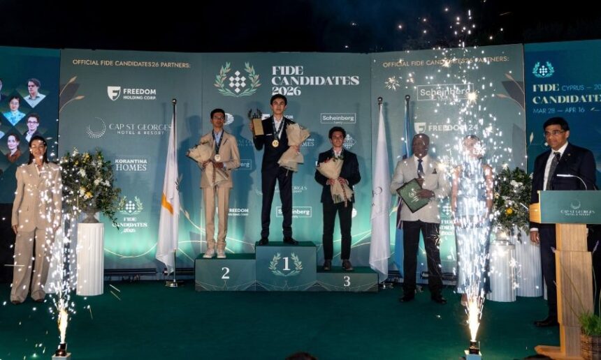 Με μια εντυπωσιακή και συγκινητική τελετή λήξης στο Cap St Georges Hotel & Resort στην Πέγεια, ολοκληρώθηκε το FIDE Candidates Tournament 2026, η κορυφαία σκακιστική διοργάνωση που καθορίζει τους διεκδικητές του Παγκόσμιου Τίτλου. Η διοργάνωση, που για πρώτη φορά φιλοξενήθηκε στην Κύπρο, χαρακτηρίστηκε από τη FIDE ως ιστορική, συνδυάζοντας το κορυφαίο αθλητικό επίπεδο με την αυθεντική κυπριακή φιλοξενία.